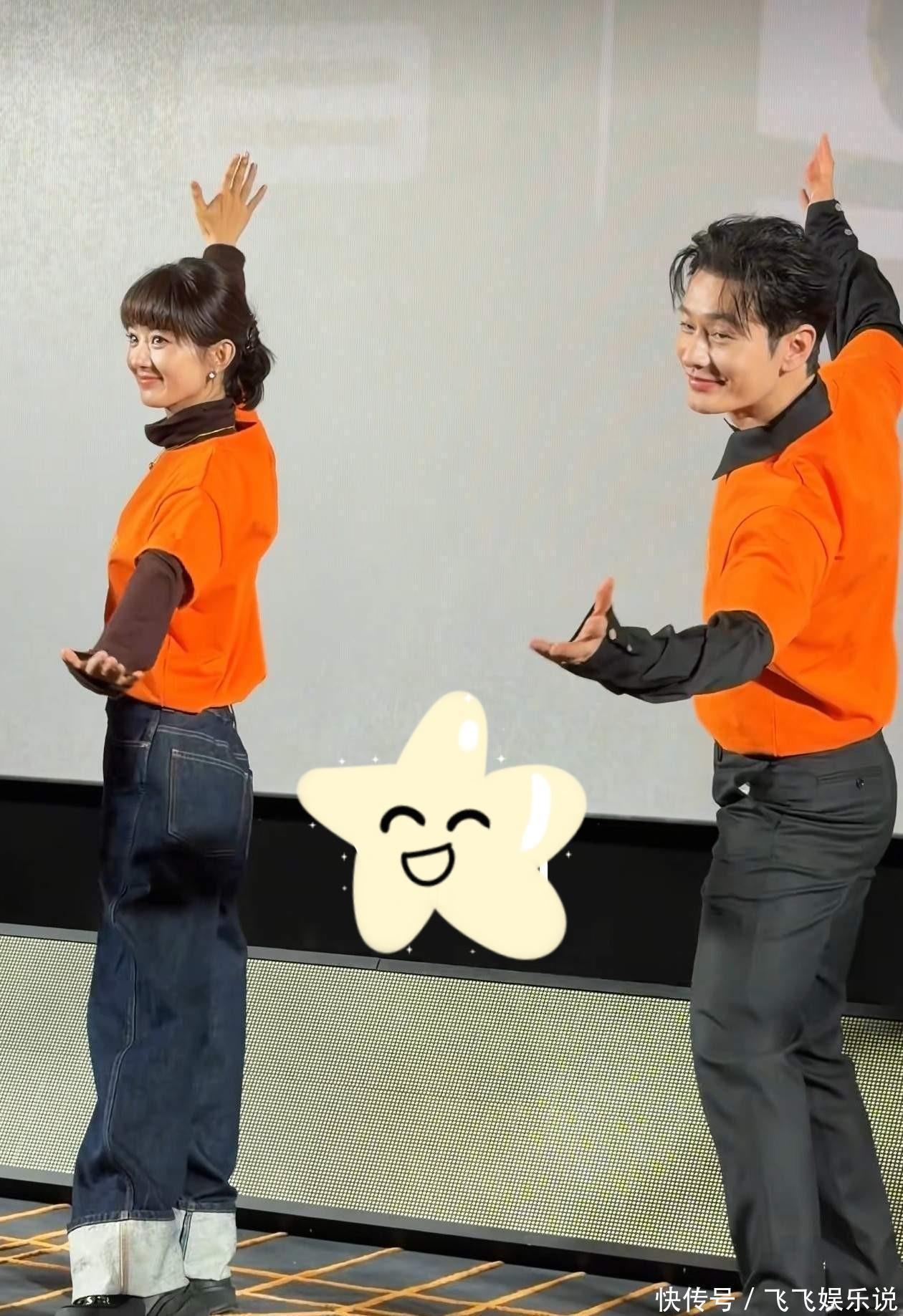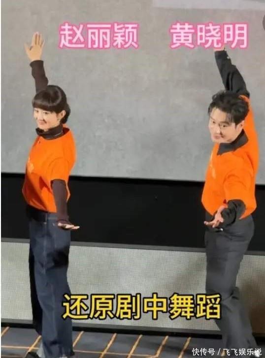 和黄晓明一起跳舞两人还是很有节奏感的,除了手脚僵硬也没有什么其他缺点了,两人现场的互动也没有太多,貌似不太熟的样子。